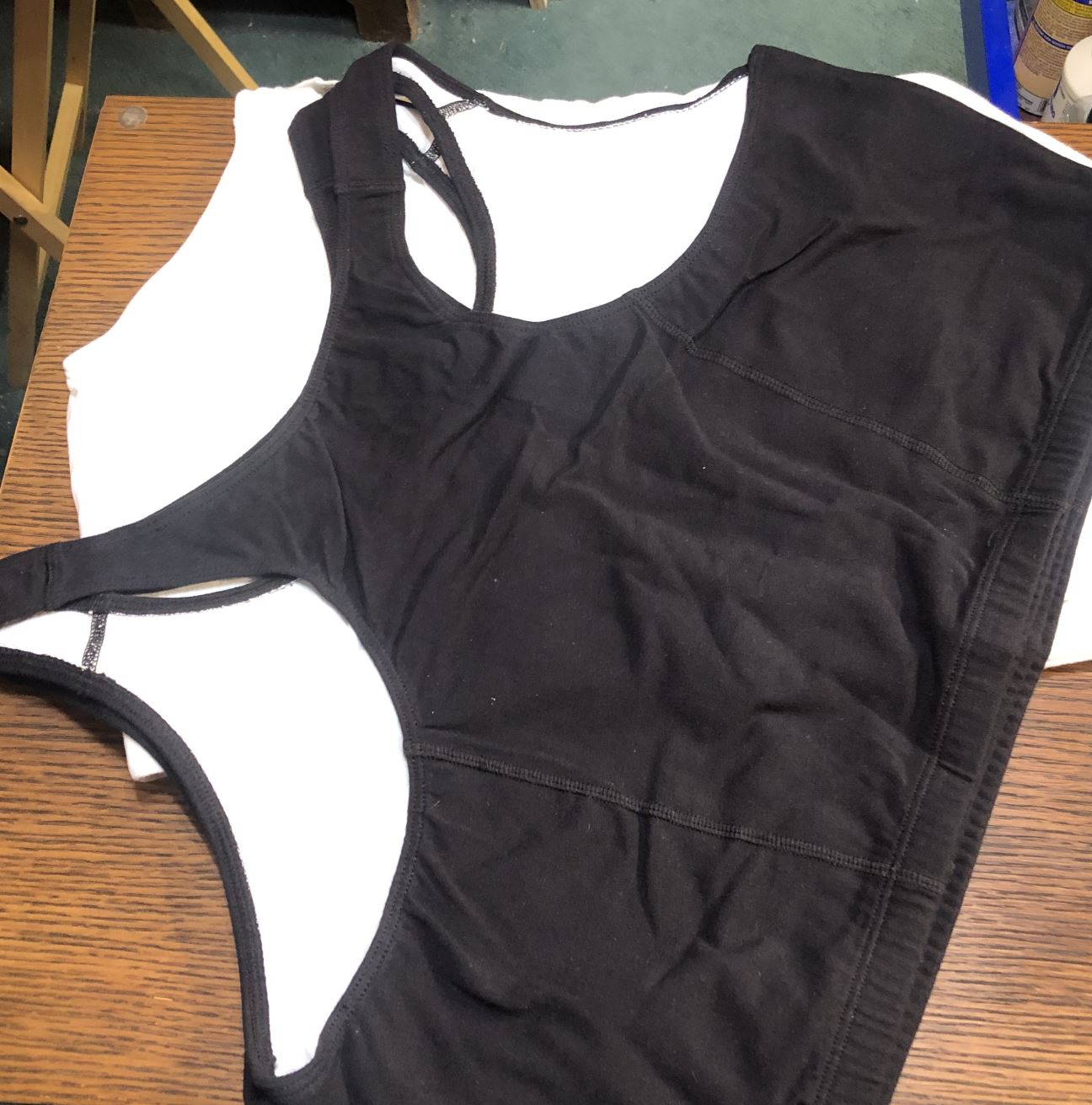 two cotton tank bras. I like the racerback style, but really anything will work. Matching the bra colors is optional. I find that the multi-packs from the various resellers work pretty well and give a reasonable return.
