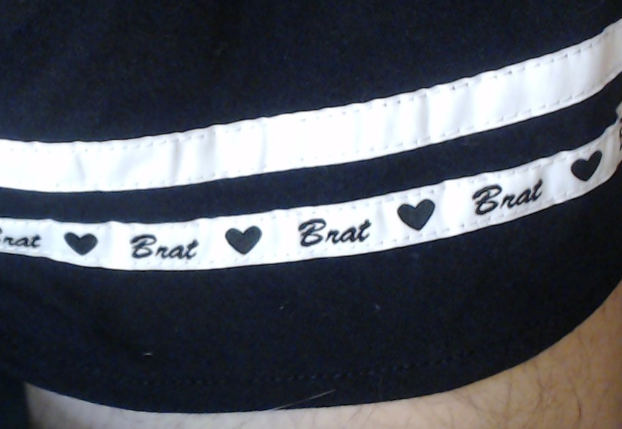 Besides the applique on the butt, the banding on the short-short skirt says Brat as well.