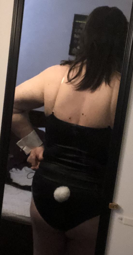 I bought a bunny outfit, because I was feeling silly one day. The back mostly works. . . .